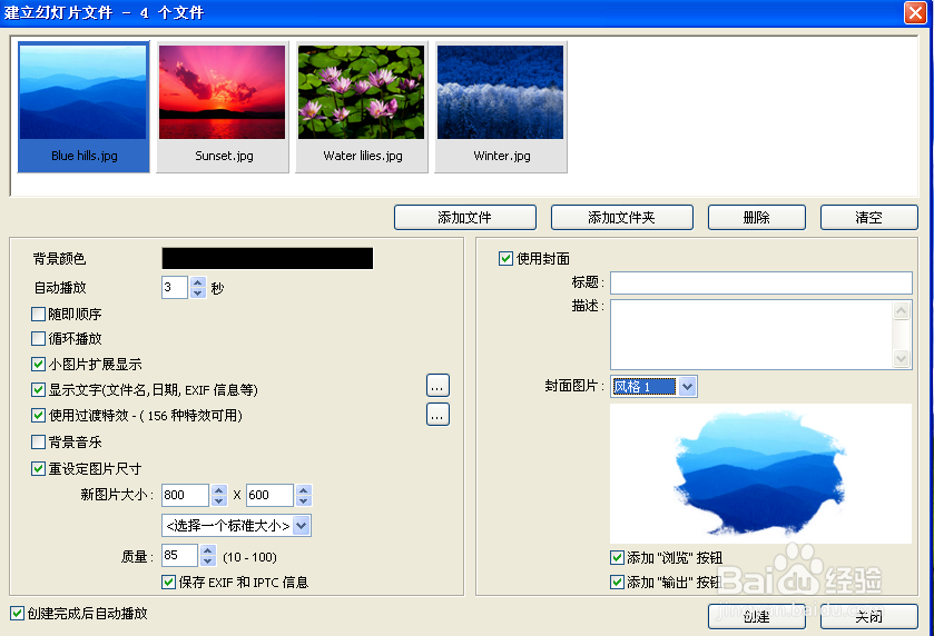 轻松制作具有过渡效果和音乐(支持MP3,WMA,WAV等…)支持的图像幻灯片;