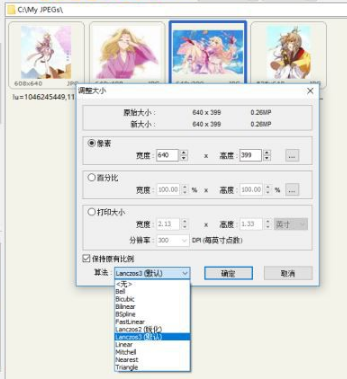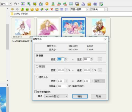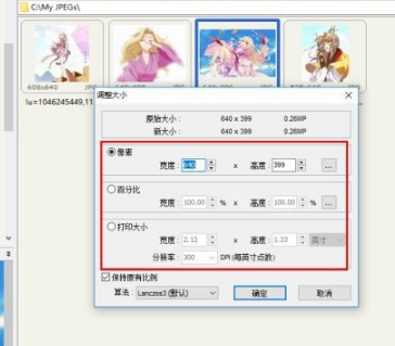 6、其提供了按照图像、百分比、打印大小等多种不同的类型进行选择,并设置相应的尺寸数值。