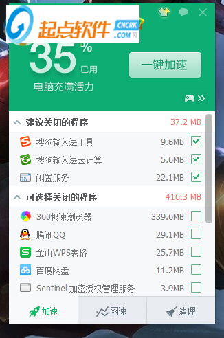 360加速球是一款从360卫士中单独移植出来的软件,这款软件集成了系统加速以及流量监控等功能,用户只需轻轻一点该软件立马能够释放内存。这样能够使运行迟缓的电脑再次流畅起来。