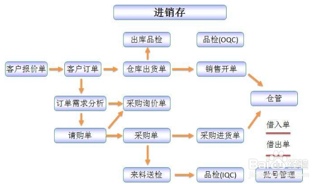 3、采购:采购部门依据所接请购任务和库存情况,向材料供应商采购料品。