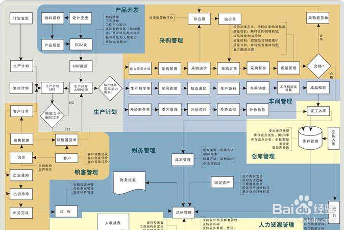 它在企业资源最优化配置的前提下,整合企业内部主要或所有的经营活动,包括财务会计、管理会计、生产计划及管理、物料管理、销售与分销等主要功能模块,以达到效率化经营的目标。