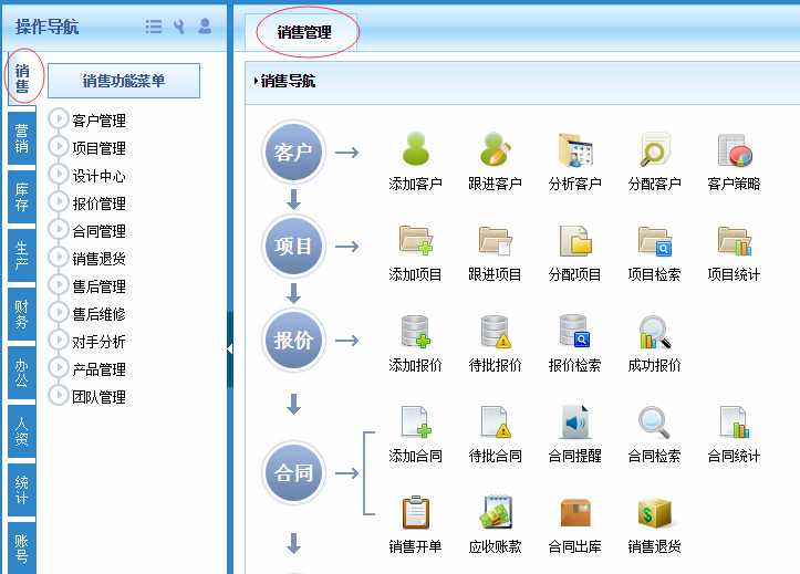 销售管理(1)统一进行智能化的商机分析和维护,用户可掌握每项业务各个阶段的成功机率、预计成交额、拜访记录等信息,并提供各项分析报表,为企业强化或调整销售策略提供依据。
