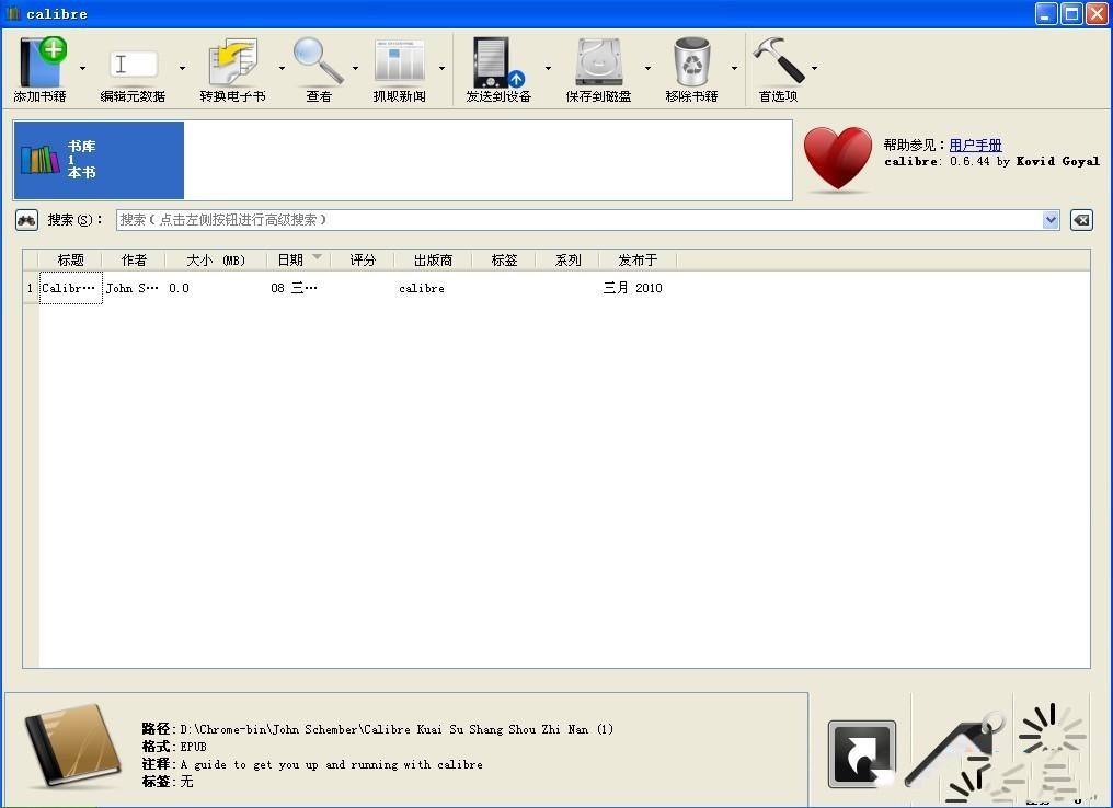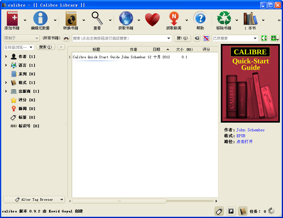 Calibre是免费的电子书制作、阅读软件,源代码开放,拥有跨平台的设计,支持多个基于不同系统的便携式移动设备,包括苹果iPhone、Amazon电子书等设备。它是一个完整的电子图书馆,包括图书馆管理,格式转换,新闻,将材料转换为电子书,以及电子书阅读器同步功能、整合进电子图书阅读器。软件设置向导中需要您制定一个空的文件夹来存放处理的文件。