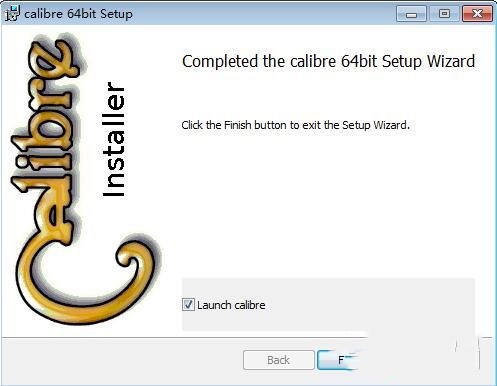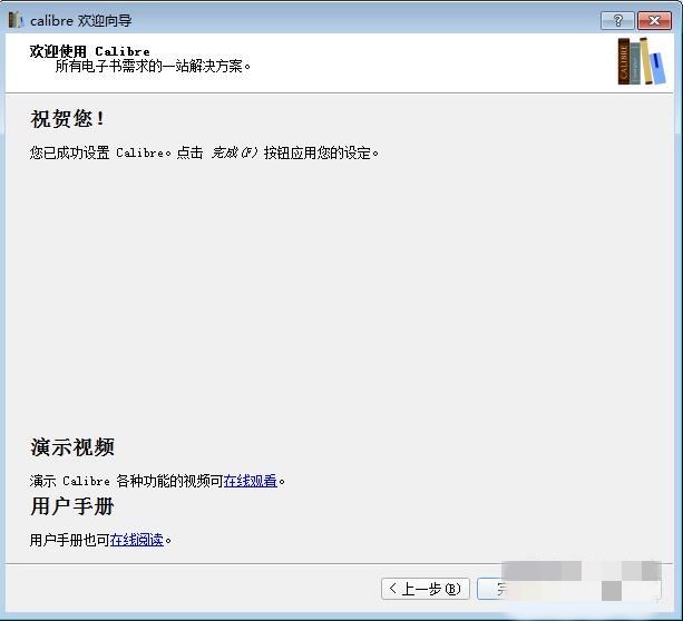 4、完成安装点击“完成”按钮关闭安装向导并运行Calibre