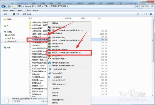 1.首先你电脑要装有解压缩的软件,随便一个就可以,然后在epub文件上右击,然后解压到一个文件夹。