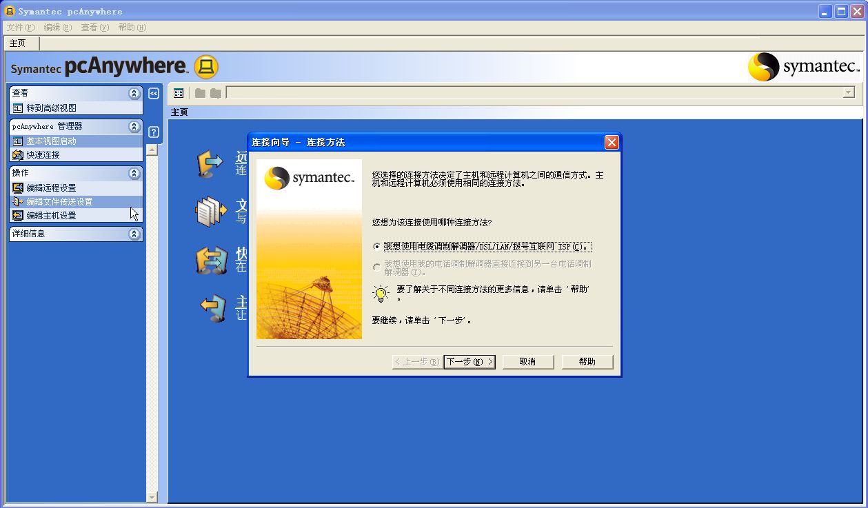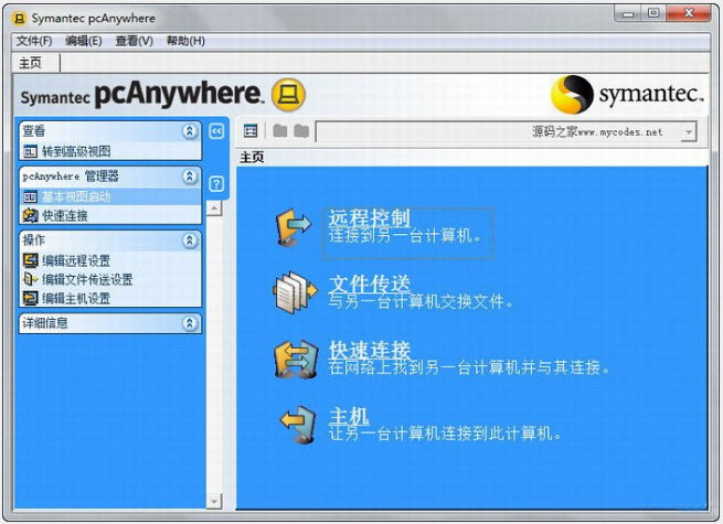 Symantec pcanywhere是一款目前世界领先的远程控制软件,其主要具备保护远程控制、文件传输、命令队列、远程管理、快速部署以及连接等功能,不仅能为用户有效的管理计算机并快速解决技术支持问题,还能提供更简便、更安全的远程设备连接,就和我们平时用的win2K的远程终端、xp与2003系统的远程桌面和远程协助、QQ的远程协助、VPN环境的远程协助、网络设备的远程管理等类似。和同类软件相比,pcanywhere拥有自己独特的优势,除了具有简化的连接操作,更具有更广泛的远程平台支持,即使使用了路由器和防火墙,也可以随时随地轻松地连接到台式机或服务器,还能借助经过认证的远程安全控制和多层安全防护,减少安全违规事件,而且全面的远程管理功能还可以解决许多常见问题,也无需进行完整的远程控制会话。