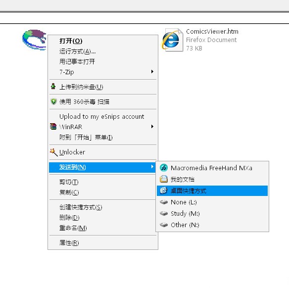 2.接下来,为了方便使用(此步可做可不做),ComicsViewer.exe -> 右键-> 发送到 -> 桌面快捷方式