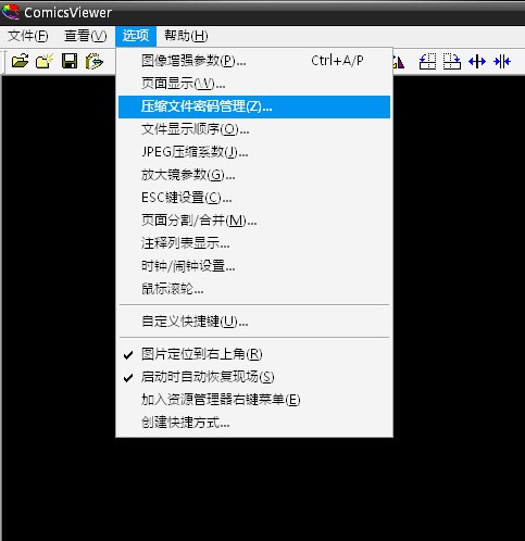 3.然后打开 ComicsViewer.exe -> 选项 -> 压缩文件密码管理