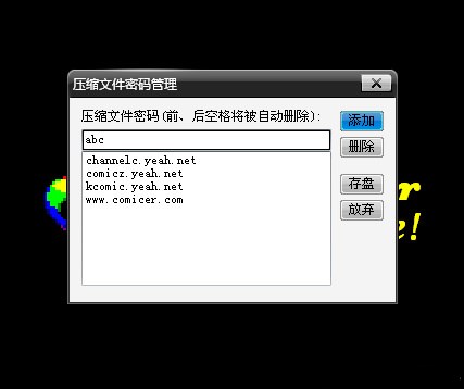 4.亲亲可以把你常用的压缩密码输入,以后你直接使用RAR文件看漫的时侯你常常使用的那些密码就不用输入了,也不用专门去解压缩浪费空间。