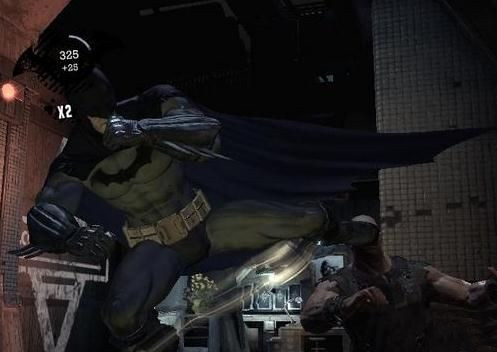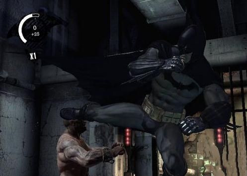 超酷的动作打击感受、华丽的连击炫技、击中敌人时产生的空间特效会让你一上手就停不下来,蝙蝠侠就是“帅”,第一个战斗场景就让我不由地说出了这句话。战斗时连续按鼠标左键,蝙蝠侠就会做出动作连击,左一拳、右一脚、飞起来再踹一下,片刻间敌人全部倒下,战斗的感觉——淋漓尽致。需要注意的是,当敌人头上亮起蓝色闪电符号时,你要立刻按下鼠标右键进行反击,不然的话就要挨打。只要不挨打,系统就会奖励你连击点数,连击次数越多在一场战斗中你获得的经验就越多;同时在升级了连击技能后你还能使出更多的特殊技。当然你也可以选择暗杀敌人,瞧瞧绕到敌人背后蹲下,按下鼠标左键就可以了。