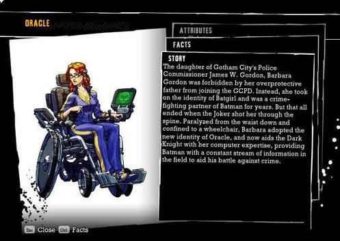 蝙蝠侠的陆地、水上和空中移动载体。游戏中开头就出现了很多人梦寐以求的蝙蝠跑车,蝙蝠侠把小丑抓进疯人院开的就是这辆车;蝙蝠飞机,在解决掉毒藤女出来的时候,蝙蝠侠是乘坐蝙蝠飞机逃离植物园的。遗憾的是,在游戏中玩家并不能亲自操控这两个蝙蝠车,希望在后作中能够圆玩家这个梦。