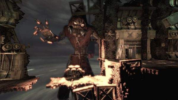游戏画面:《蝙蝠侠阿卡姆疯人院》画面的整体风格偏于幽暗、灰色,如下图:眼前的疯人院显得很幽静,只有几盏灯亮着;左上角硕大的月亮隐藏在迷雾中,即使露出一部分亮光,也是那么的迷茫;月亮之下的哥谭市看的很近,其实很远;本来是哥谭市包围着疯人院,却感觉整个市区也几乎被疯人院中的小丑都占领了。由于游戏剧情是在晚上进行的(重要的是蝙蝠也是晚上活动的),因此没有白天等强光环境。总的来说,游戏的色调很好地衬托出疯人院被小丑占领后的恐怖气氛,也反应出疯人院这个高度危险地方的特色。这种感觉在开启全部特效后更明显,当然机子差点的同学也不需担心,低特效下画面的表现还是不错的。建议配置差的同学,在设置里尽量开启“空间扭曲”效果,这样在游戏中蝙蝠侠攻击敌人的时候会有空间特效,动作感会超强。