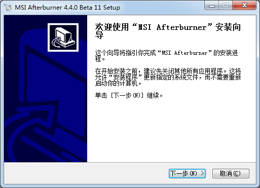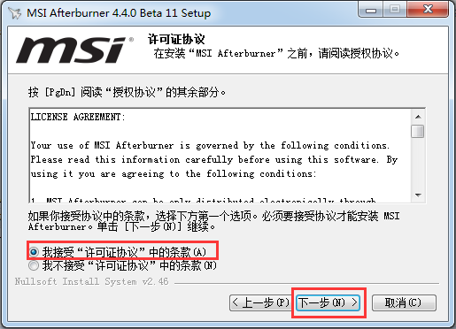 1.到本站下载安装AfterBurner,打开安装程序,选择安装语言