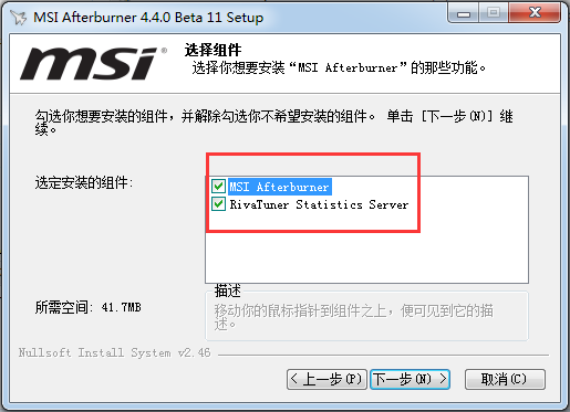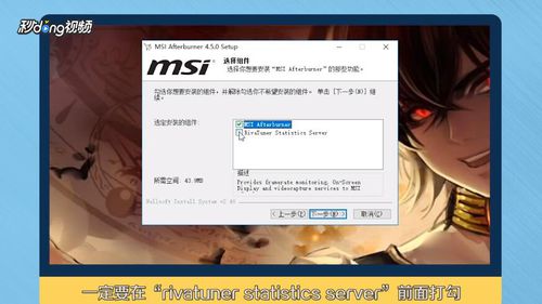 3.一直下一步到选择组件界面,一定要在“rivatuner statistics server”前面打勾。