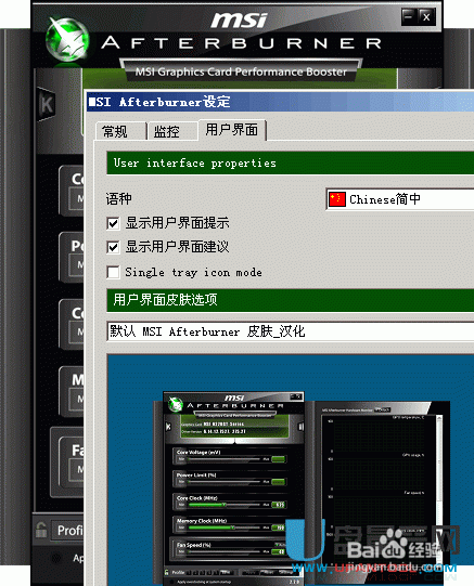 MSI Afterburner提供多种介面外观风格供玩家选择,同时能自行设定显示在介面上的监控选项。