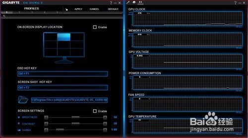 超频后,跑3DMark软件甚至是Furmark拷机确认稳定的显卡频率后,可点Profile边上的数字,然后点“Save”保存方案。以后只要直接点击该数字,或者使用快捷键就可以直接启动设置好的频率,一键超频。最多可保存5个配置文件。点击小锁按钮,可固定当前频率不变,且不能再使用save按钮。