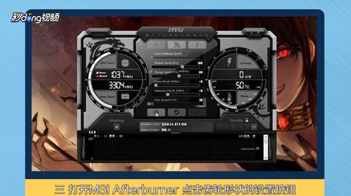 4.打开msi afterburner点击齿轮形状的设置按钮。