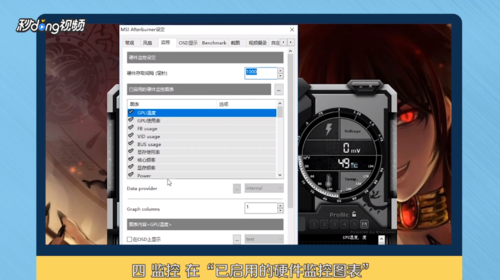 5.监控在“已启用的硬件监控图标”,点击你想监控的项目。