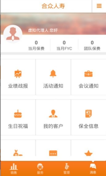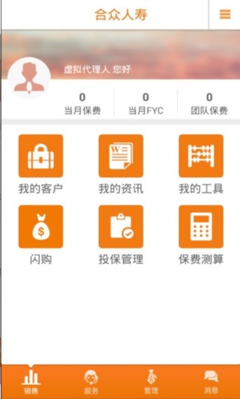 1.优良的页面管理,四大板块:销售、服务、管理和消息。让用户更快的找到自己需要用到的功能。2.高质量的保险产品与强大的公司后盾让顾客放心体验购买,不用害怕在平台上购买没有保障。