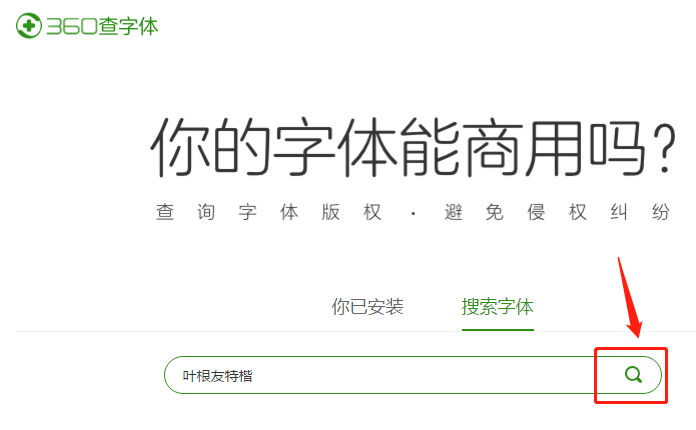 二、用户还可以在此工具上搜索指定字体,查看该字体的版权范围,避免“踩雷”。