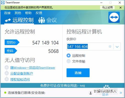 Teamviewer13使用方法进入登录界面以后会显示用户id和密码,作为主控方,你需要远程另一台计算机的id和密码。