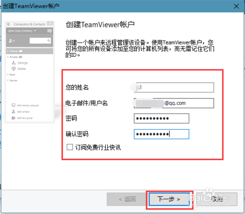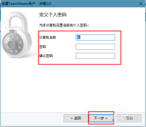 进入注册界面后设置好姓名、账号、密码等,再点击下一步。