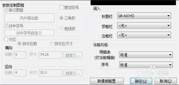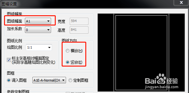 在里面,我们一般可以先对图幅的规格进行设置,有A4-A0几种常规选择,还可以自定义图幅,此外,还可以选择图幅的方向。