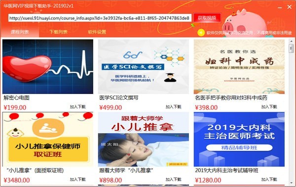 华医网VIP视频下载助手是一款能够下载华医网VIP视频的软件,不需要充值可以看VIP课程,软件使用非常简单,输入地址之后,点击加入下载可以了!
