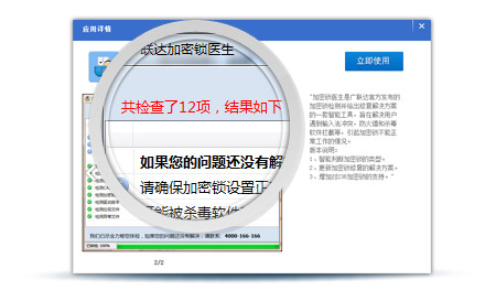 启动软件时,自动检测加密锁是否连通,提前感知并提示软件是否能启动,并连通加密锁医生,智能修复异常环境。