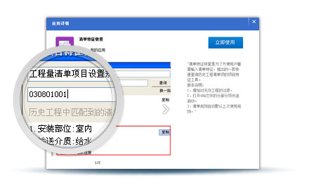 清单招标时,进行清单列项时,调用清单特征快查组件,根据清单编号查找历史工程中的清单特征,快速完成清单项的编辑。