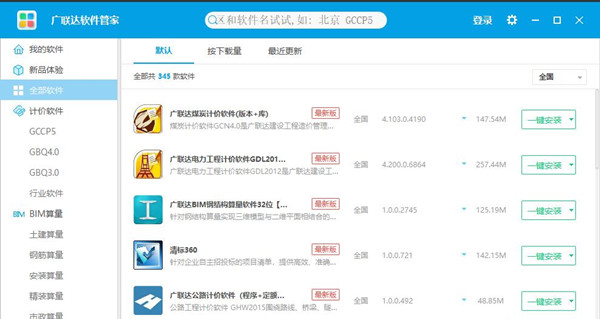 3.根据左边的分类,就可以选择自己想安装的软件。右上角的“全国”这里,可以更改区域,想装不同地区的,可以在这里更换。