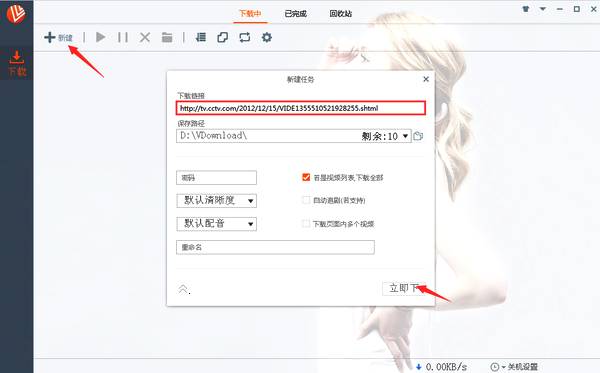 3、打开维棠,点击“新建”按钮,弹出新建任务框,粘贴下载链接,设置保存路径,点击“确定”即可(维棠会智能粘贴好地址,若未粘贴,自己粘贴一下)