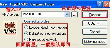 被邀请方设置(开启远程控制程序) 被邀请方在连接前需要知道被控制方的IP地址和被控制方设置的密码。 在Tight菜单下选择‘TightVNC Viewer’选项。 弹出连接窗口,在‘VNC server’栏中输入被控制方的IP地址。 在弹出窗口中输入被控制方的密码(‘Primary Password ’or‘View-only password’),即可连接成功。