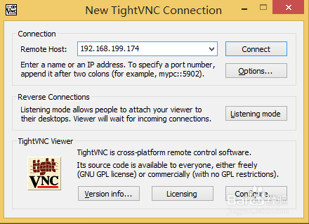 windows tightVNC Viewer新建连接(New Connection),在Remote Host中输入Mac的IP地址。