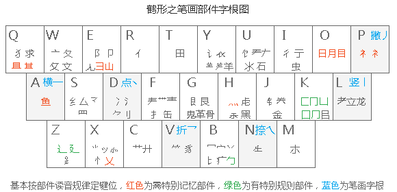 另注:三个单笔画字“一乙〇”因无字根可拆,重复自身笔画码补全四码,如:一 yiaa