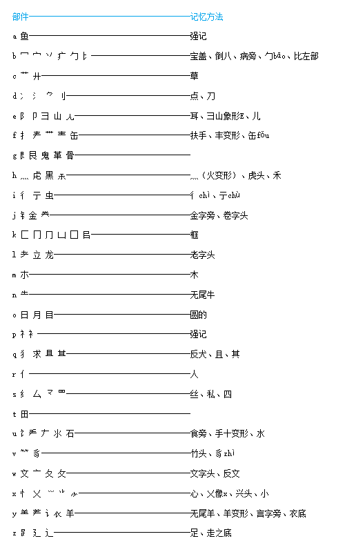 四、小字字根列表(如果你掌握了规则记住了部件,那哪些字是小字,自然也就知道了,小字属于规则推导字根):
