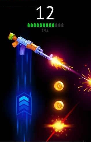 枪支射金币是一款十分酷炫的接机手游,玩家在游戏中需要来控制枪支射出各种子弹,然后让枪支借助反作用力不断向上升,而且在途中需要尽可能的获得金币,用来解锁更多新的枪支武器,享受不一样的游戏乐趣.。游戏操作简单易上手,深受抖音朋友们的喜爱!
