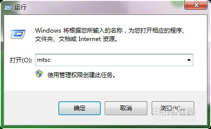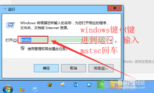 按windows键+R键,打开运行界面,输入mstsc,敲回车