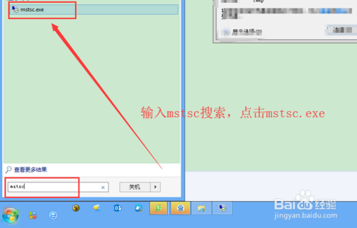 2.另外一种方式就是直接按windows图标,输入mstsc搜索,点击mstsc.exe进去