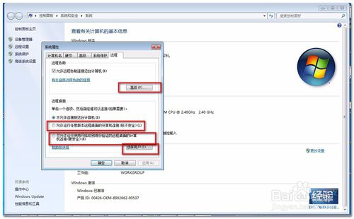 2.选择【远程设置】,弹出的信息框如下,进行红色部分的相关设置