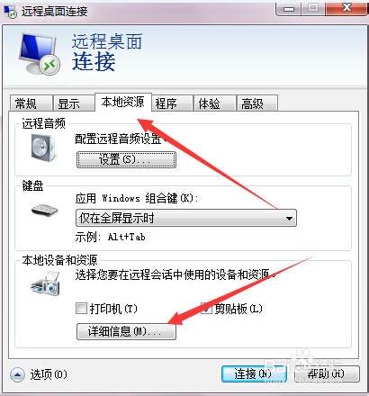 win7使用mstsc远程桌面时如何连接本地磁盘和U盘?