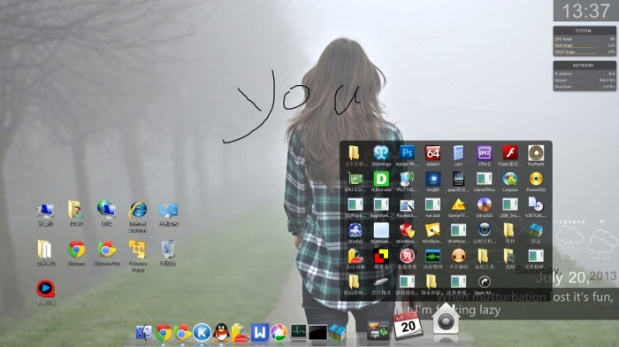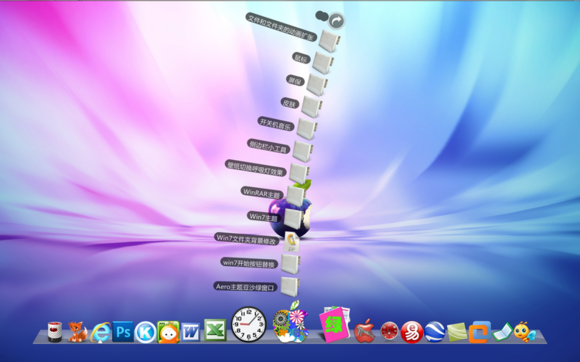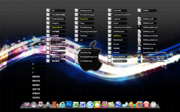 一、StackDocklet插件之扇形效果1.整这个阿拉丁神灯插件,花了一些时间.记得还是xp时代,在偶家的老爷机上便研究过,大约是集显的问题,最后不得不放弃,后来一直就没再弄过。这次无聊做这个苹果主题,既然貌似跟苹果搭上界,当然要配套RD或OD这类插件.才会显得风格一致些。