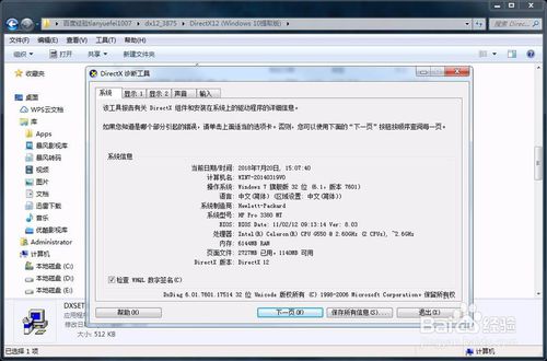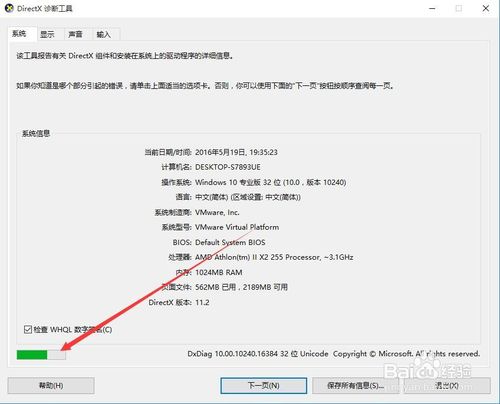 这时就会打开DirectX诊断工具,同时软件会自动扫描系统,左下角会显示其诊断的进程