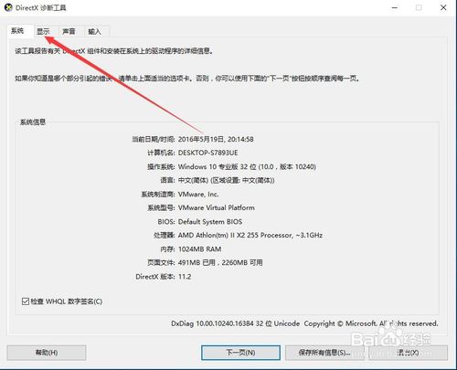 接着就会弹出DirectX诊断工具,在界面系统信息区域可以看到对应DirectX的版本。