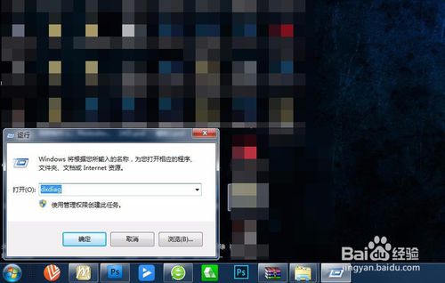 接着点击开始菜单,打开运行选项,然后在输入栏输入dxdiag,点击确定。