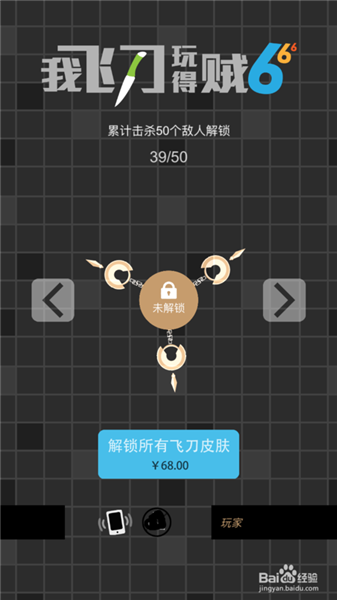 5、游戏中有很多的飞刀样式,不过都是加锁的状态,需要解锁才可以玩,解锁的条件有两种,一种是不差钱的人直接购买,一种就是平民玩家完成对应的任务来解锁,看自己的情况来选择。