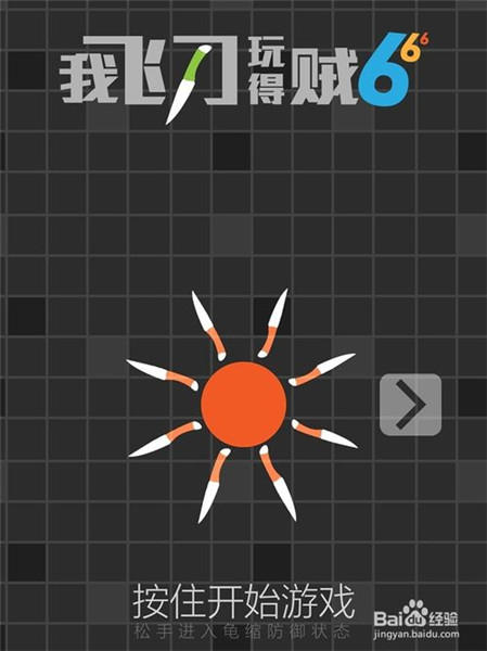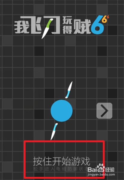 2、点击进入后,页面会告知我们按着屏幕就可以开始游戏,我们按住飞刀。