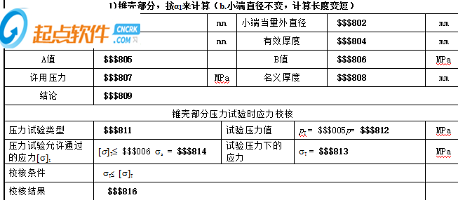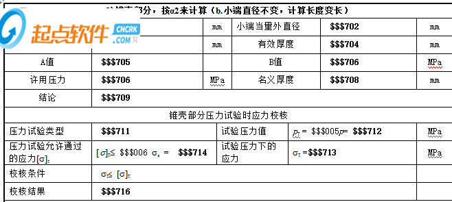 锥壳部分,按α1来计算(b.小端直径不变,计算长度变短),锥壳部分压力试验时应力校核