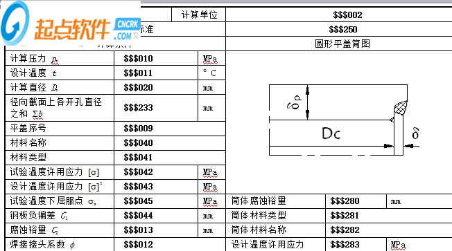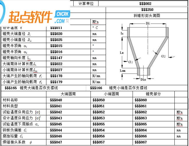 设计压力 pc,设计温度 t,锥壳大端直径 Di,锥壳小端直径 Dis