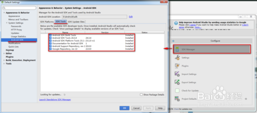安装Android SDK(可借助类似Android Studio安卓开发软件来完成);需要配置path,加入如:E:\Android\sdk\platform-tools;E:\Android\sdk\tools;E:\Android\sdk;